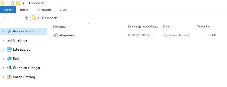 Terminado la copia de todos los comandos cerramos la venta de Windows PowerShell, abrimos la carpeta Flashback que hemos creado anteriormente y veremos que tenemos el archivo all-games.ini. Este archivo es importante ya que nos servirá para restaurar los juegos originales en caso de fallo.