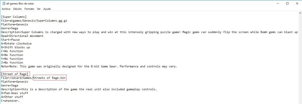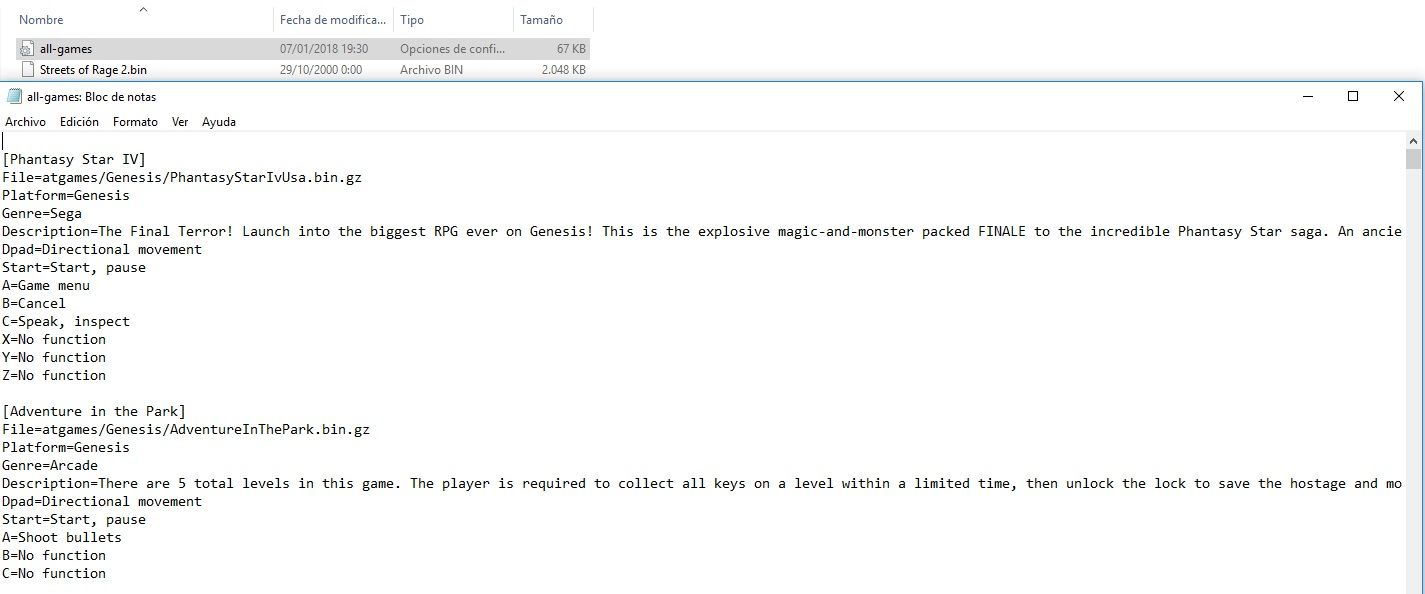Cuando tengamos todos los juegos y caratulas guardados en nuestra carpeta de Games , editaremos el archivo all-games.ini que se encuentra en la misma carpeta.