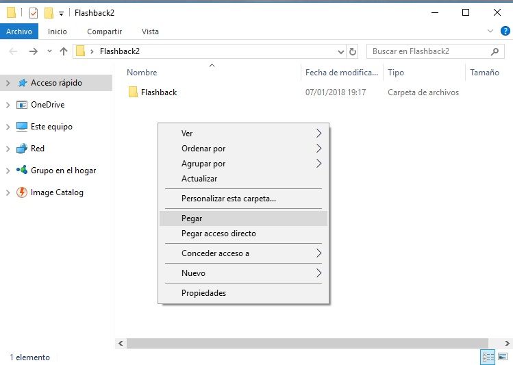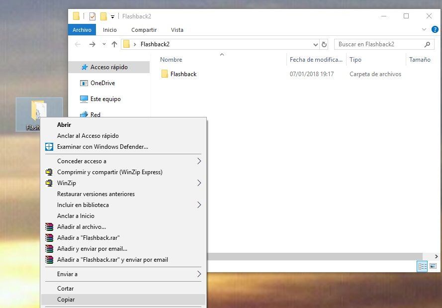 Creamos otra carpeta con el nombre de Flashback 2 donde haremos una copia de seguridad de la carpeta Flashback con el archivo all-games.ini. Copiamos la carpeta Flashback y a continuación la pegamos en la carpeta Flashback 2.