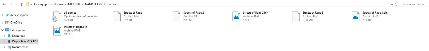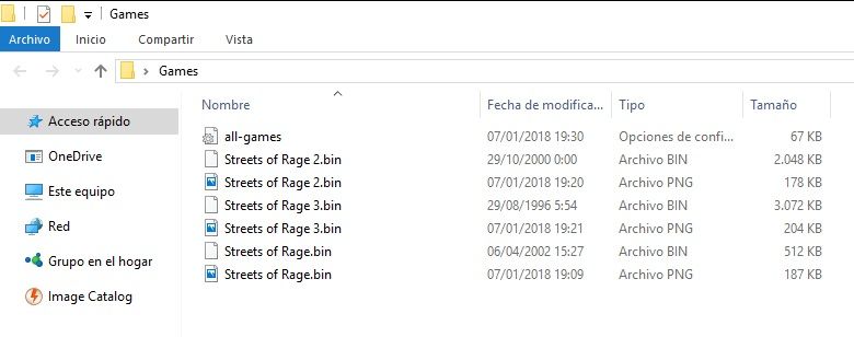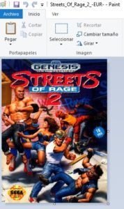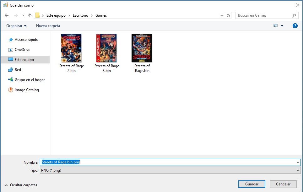 Guardaremos la caratula con el mismo nombre del juego Street of Rage.bin.png en la carpeta de Games. (No olvidéis de poner la extensión .bin.png al final)