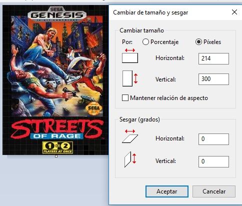 A continuación clicamos en cambiar tamaño, seleccionamos la opción Pixel y deseleccionaremos la opción de mantener relación de aspecto. En la caja horizontal añadiremos el valor 214 y en la vertical 300 y le daremos al botón Aceptar.