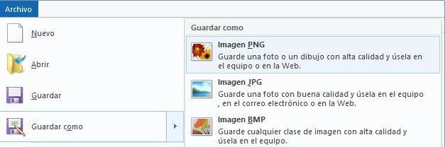 Nos dirigimos a Archivo, Guardar Como y clicaremos en Imagen PNG